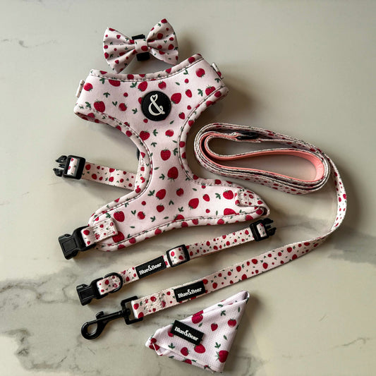Strawberry Paws Pink Dog Collar, Lead, and Harness Bundle