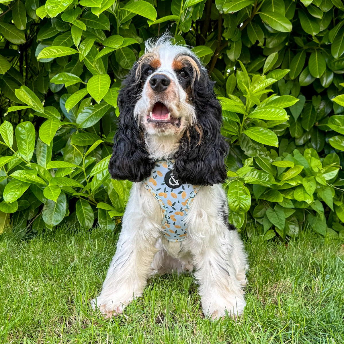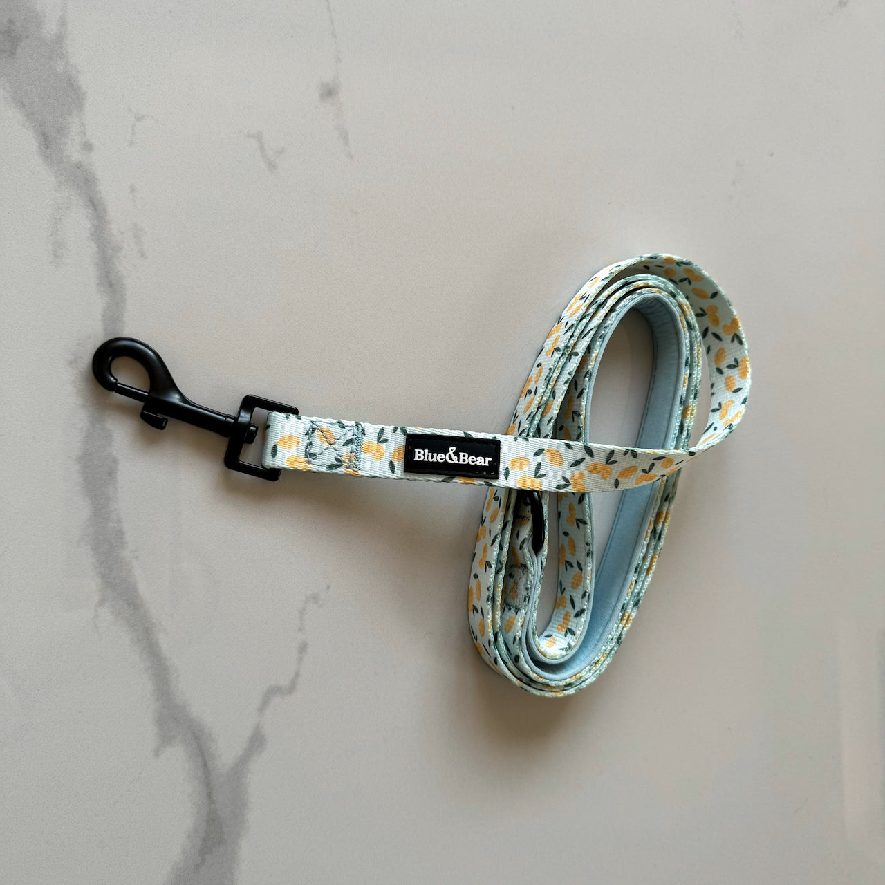 Introducing our Citrus Skies Blue Dog Collar, Lead, and Harness Bundle! Bundle up a blue adjustable dog harness, a collar, and a lead to save on our adorable citrus skies lemon pattern!